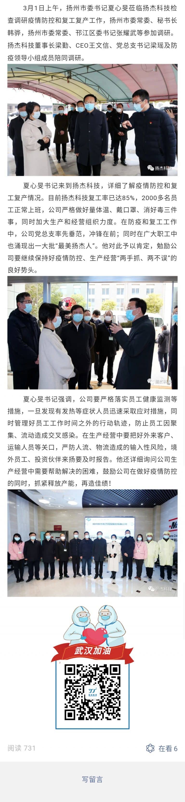 疫情無(wú)情人有情,精誠(chéng)合作顯真情 揚(yáng)杰科技收到一封來(lái)自浙江杭州的感謝信